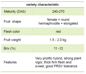 - باباي جامبيا F1 اللب احمر الانتاج عالي الثمار كمثرية الوزن فوق 2-2.5 كيلو جرام مقاومة للامراض.