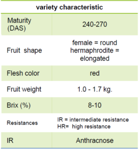 - صنف شبه قزمي قوي يتميز بعقد الثمار الجيد جنبًا إلى جنب مع لون اللب الأحمرالجذاب.