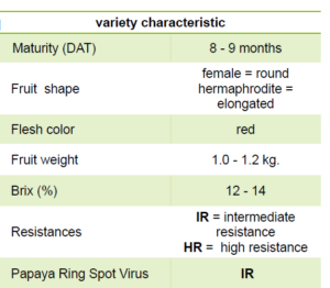 - يقاوم بشدة فيروس بقع حلقات البابايا. وهو مناسب للمناطق التي تفضل أحجامًا صغيرة أو متوسطة للفاكهة>